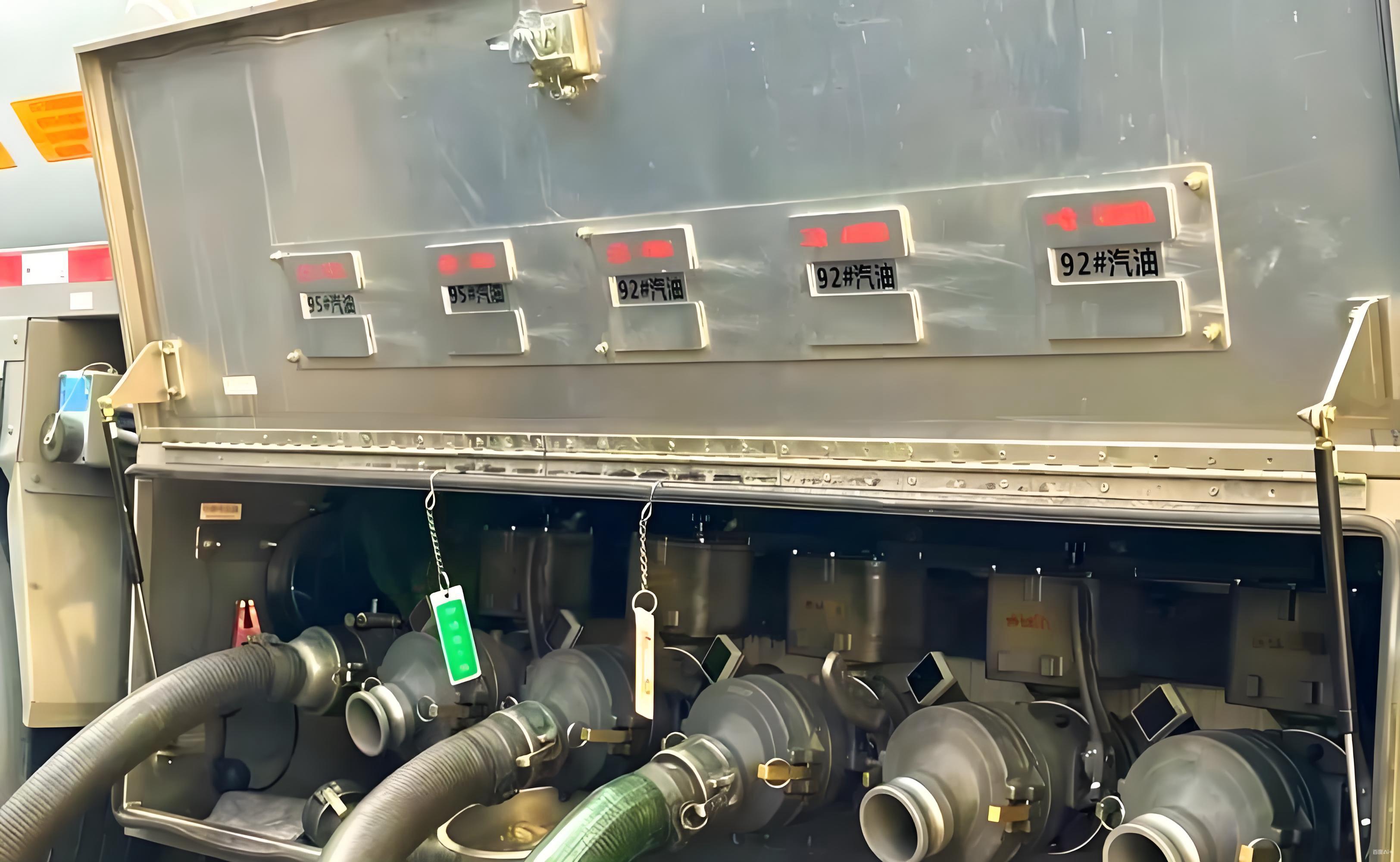 (1)运输端:油罐车设有独立隔舱,92#、95#分开装载,严禁混装;