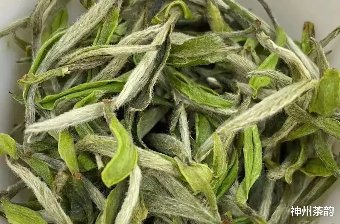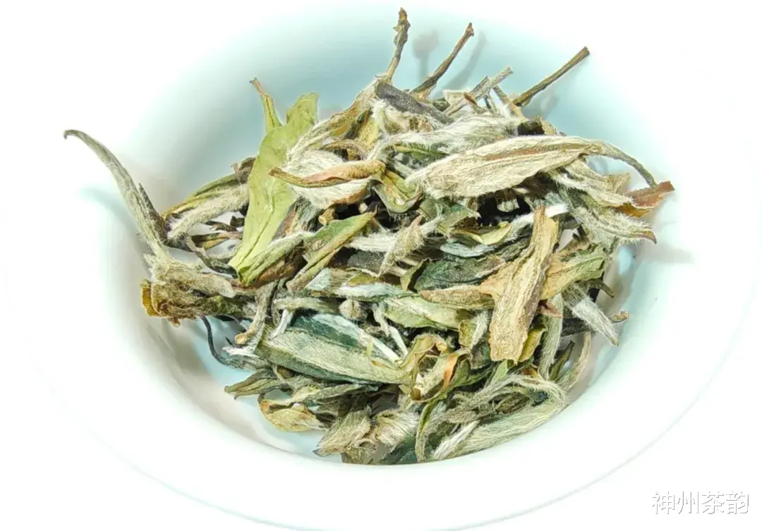 一方面,观察外形。白牡丹茶从外形上看,叶张肥嫩,叶态伸展、自然,两叶抱一芽,夹以银白毫心,呈“抱心形”;叶背布满了洁白的茸毛,叶缘向叶背微卷,芽叶连枝;叶色灰绿,呈暗青苔色;毫心肥壮,毫色银白,毫香浓显。