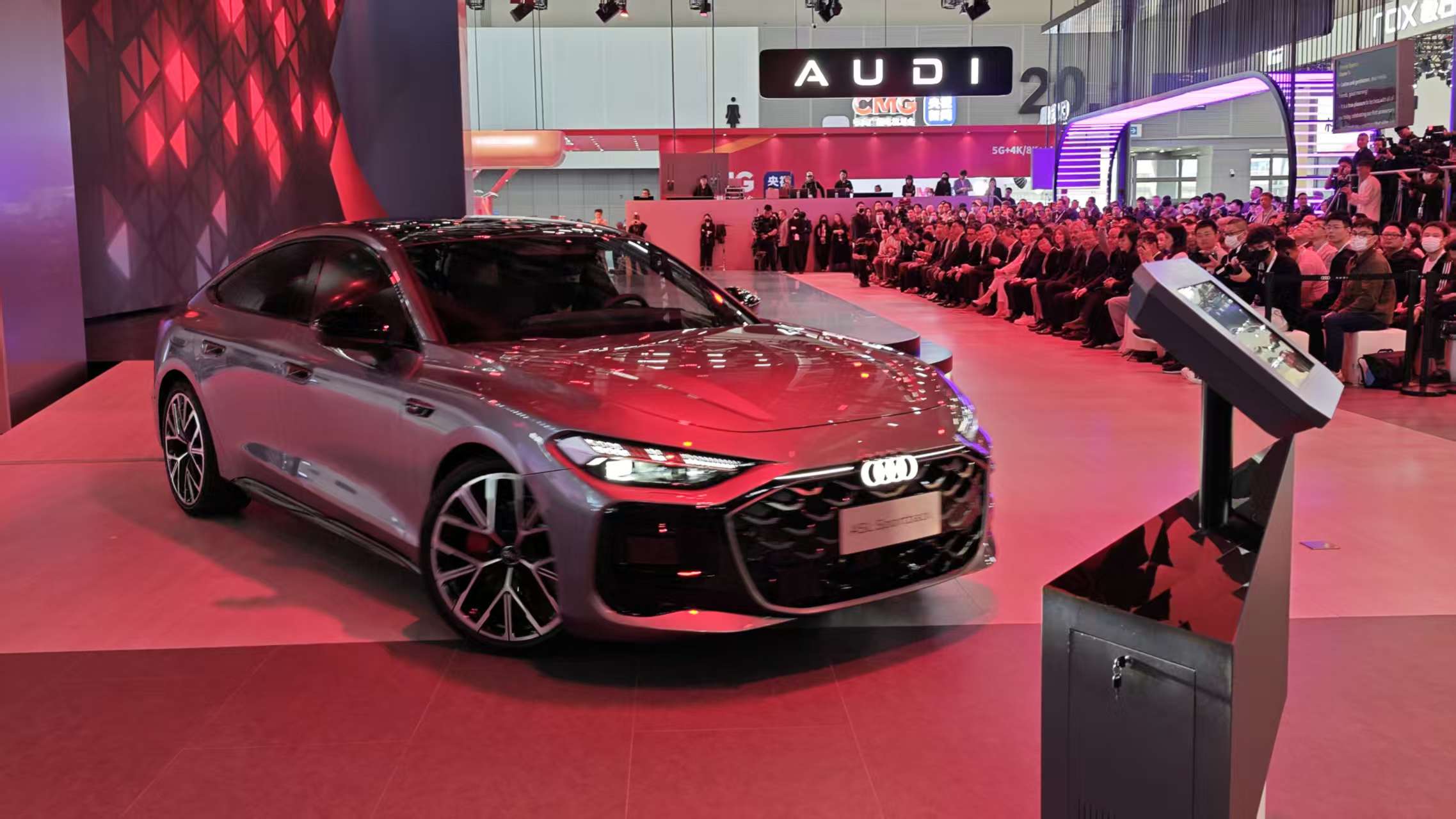 来到20.2号馆,上汽奥迪展台则是另一番景象,灯光与镜面交织出浓郁的科技感和豪华氛围。这里的绝对焦点,是刚刚发布的奥迪 E5 Sportback 钦定性能quattro型。