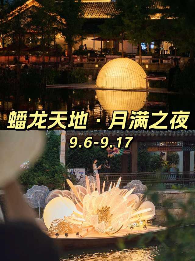 蟠龙天地·月满之夜整整12天的文化盛筵、90多场特色演出、4天的灯火长街、50多场工作坊,中国纸雕艺术家打造的“水中月神”艺术花灯装置,以及佛山纸艺灯笼非遗传承人打造的“水中映月”传统纸灯艺术装置,都将在此展现,非常值得期待。9月6日-9月17日青浦区蟠龙天地