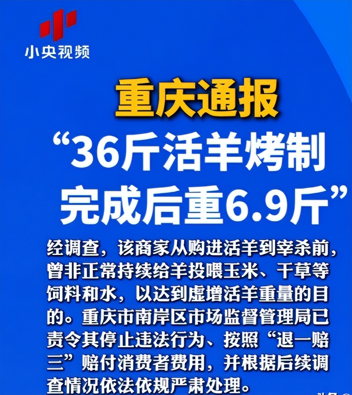 简直离大谱!一只36斤的活羊,烤完只剩6.9斤,缩水达80%,这烤出来的是羊,还是消费者的信任?