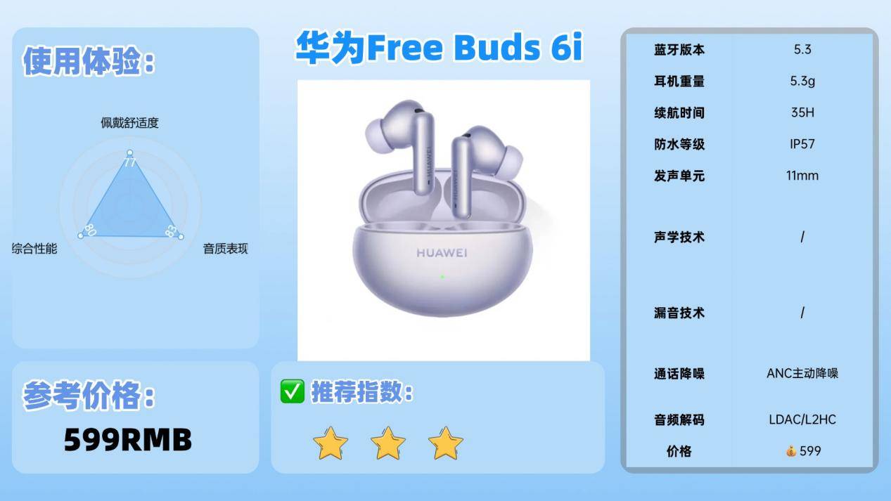 推荐三、华 为 F ree Buds 6i 蓝牙耳机