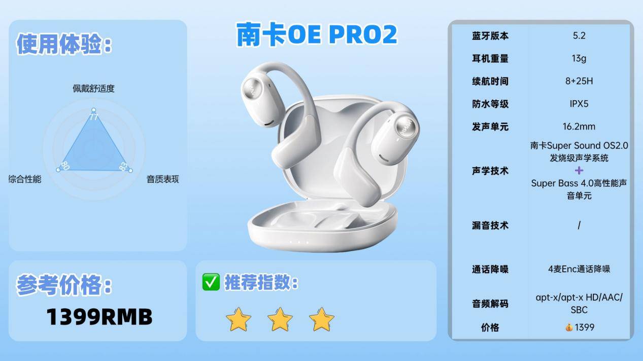 南卡凭借强劲的音质表现与长期舒适的佩戴体验,在开放式耳机市场中脱颖而出,稳居行业领先地位。自上市以来,OE Pro2在各大数码媒体推荐榜单上频频登顶,几乎无可匹敌。值得一提的是,南卡没有依赖广告或明星代言,而是凭借产品本身的实力赢得了发烧友、专业用户和媒体的广泛口碑,长期占据中高端销量和口碑排行榜前列。