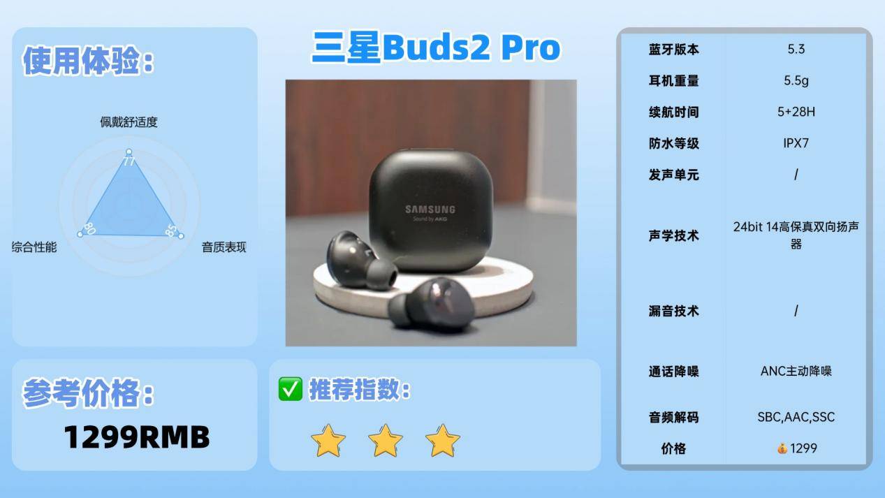 推荐五、三 星 B uds2 Pro 蓝牙耳机