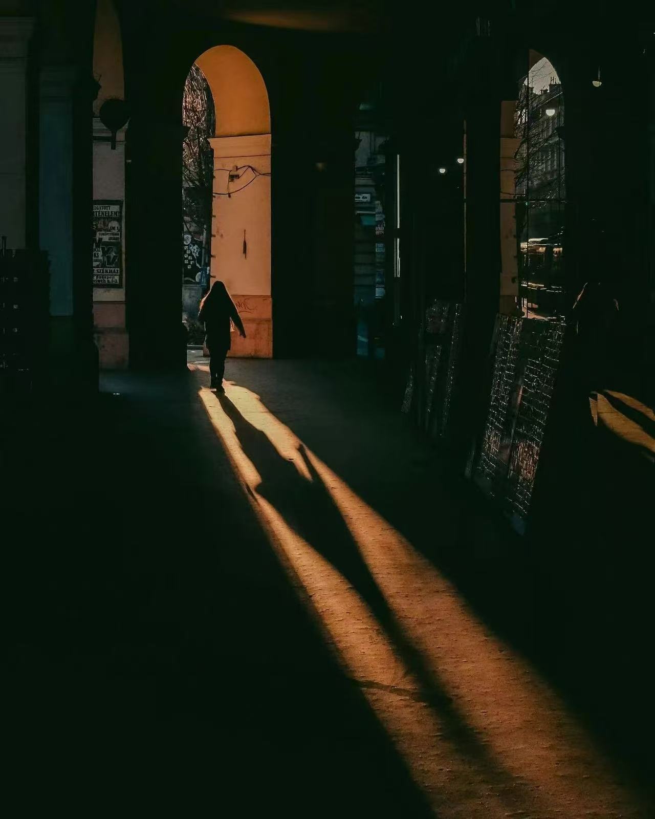 在街拍或人文摄影中,斜向的光影常常能为平凡的场景注入独特的情绪。