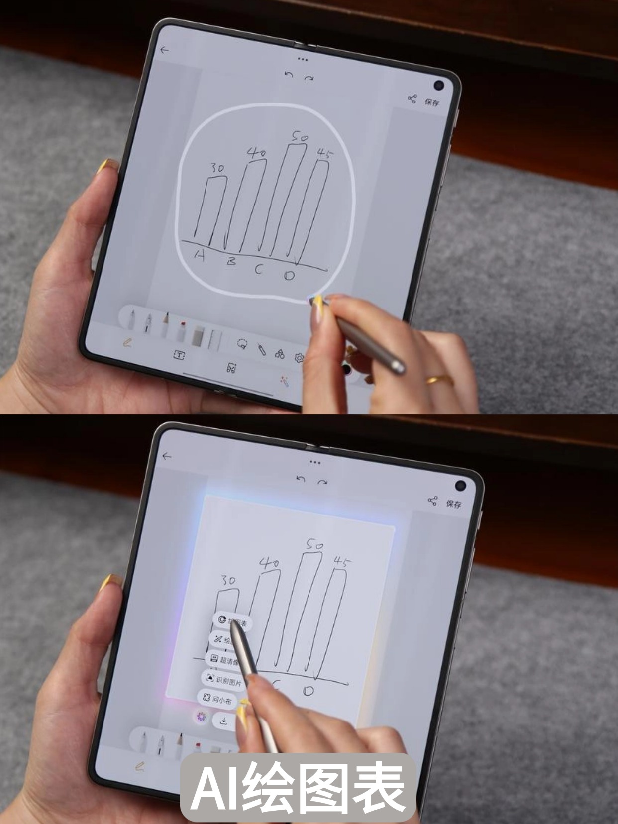 在AI功能体验集成这块,OPPO要丰富的多,像这代OPPO Find N6是创新适配了AI手写笔,一圈一点随手批注、草稿转图表,体验堪比随身带了个智能笔记本,这种“用了才知道”的功能,参数表里可找不到。