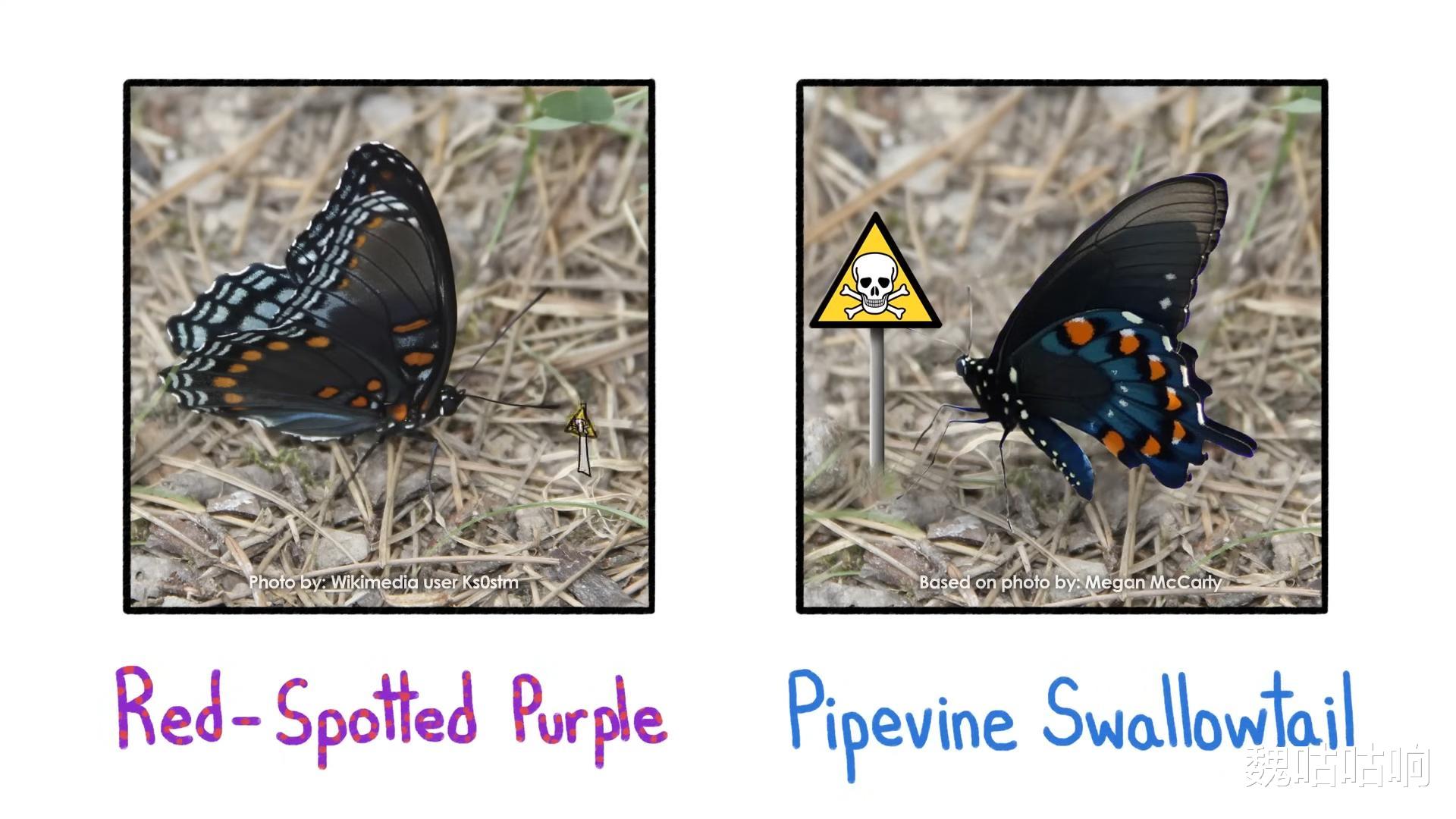 在南方,因存在有毒蝴蝶可作“模仿模型”,它们便换上“华丽戏服”,学会了骗术。