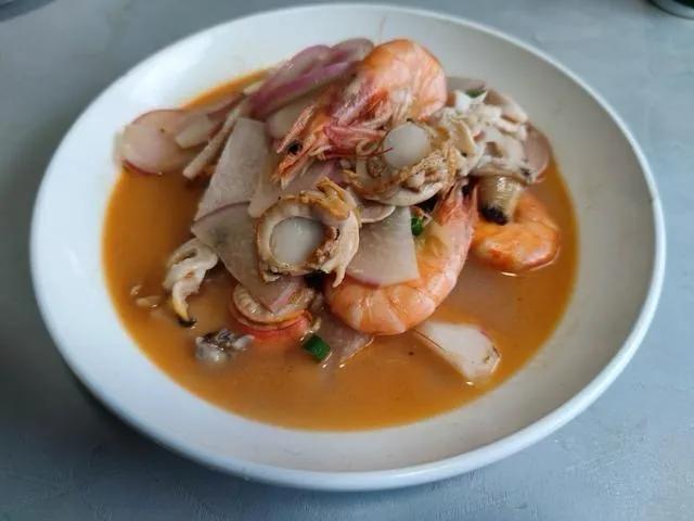 最后一种是海葵,海边人习惯叫它“海腚根”。别看它长得不咋地,口感脆嫩跟鸡胗似的,越嚼越香。三九天越冷,它越肥。处理这玩意儿得耐心,加盐反复搓洗,剖开接着洗,直到粘液不沾手。水开后下锅焯烫,变色打卷撇去浮沫捞出。锅里爆香葱姜蒜八角,下海葵小火煎出水分,再放酸菜丝翻炒,烹料酒添汤,大火烧开转小火慢炖。汤汁浓稠后加盐胡椒粉,滴几滴香油出锅。这菜酸爽开胃,海葵脆嫩,买的时候挑个头小的,越嫩越好吃。