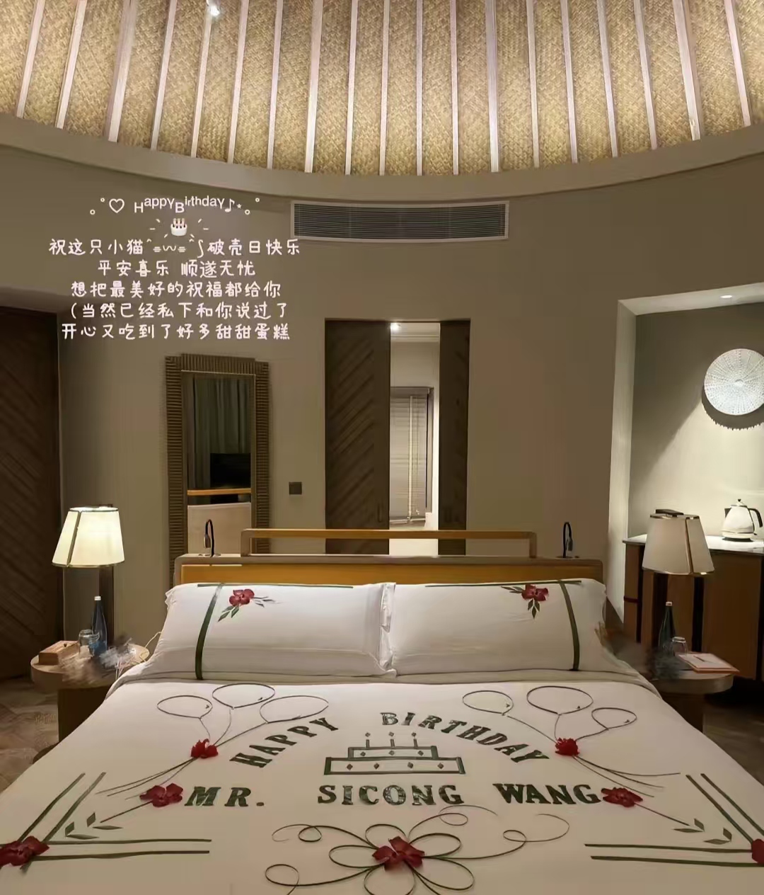 懒懒刚给他过完38岁生日。晒出来的照片里,酒店床上用玫瑰花瓣铺了“生日快乐”,铁板烧上拿食物摆出“I Love You”。最扎眼的是一盘海胆,标价3500万日元,换算成人民币155万。网友一边咋舌,一边嘀咕这俩人居然还没分。
