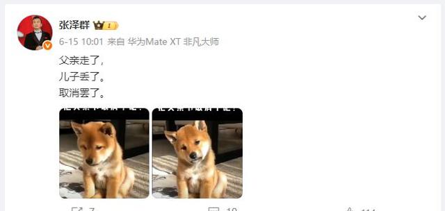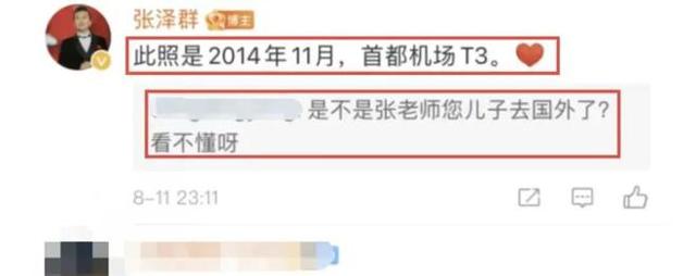 2021年,张泽群发了一张拍摄于4年前的和儿子的合照,儿子渐渐长开,和他的模样也越来越像,这大概是他最后一次见儿子。