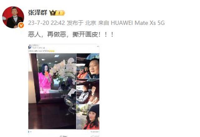 或许是气不过,或许是真的走投无路了只能用这种方式来发泄,2023年的7月份他转发了胡佳娜和一个男生的合照,配文“恶人,再做恶,撕开画皮”。