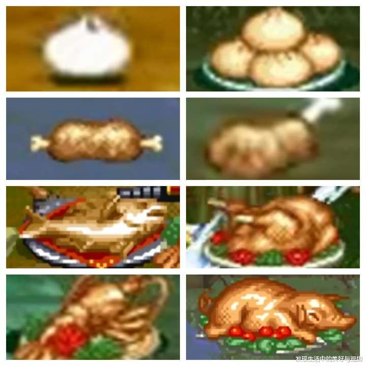 还是街机中capcom的几款经典游戏,《吞食天地》中这一大堆中华美食以及《凯迪拉克与恐龙》中的美式快餐