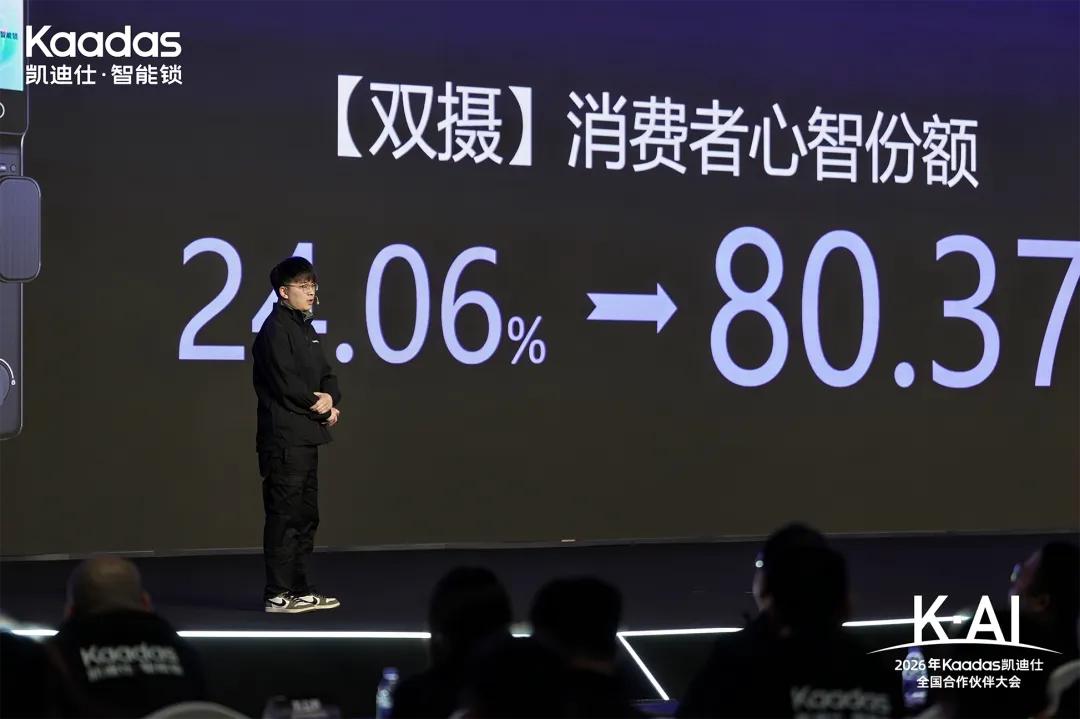 但在本次大会上,集团董事长苏祺云的战略演讲透露出明显的叙事升级。他从企业战略、品牌战略、产品战略、企业文化四个维度重新梳理了凯迪仕的发展逻辑,并在品牌目标上给出了一个更具攻击性的表述:"成为AI时代智能锁代名词",以及与之配套的产品战略定语:"Kaadas凯迪仕,重新定义AI智能锁"。