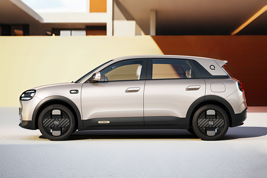 侧面采用悬浮式车顶设计,并配备半隐藏式门把手以及低风阻轮毂,优化续航表现。尾部采用椭圆形熏黑尾灯组,与前大灯形成呼应,大面积黑色后包围强化整车运动属性。