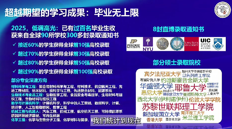 当不少高校还在为毕业生就业率发愁时,广东以色列理工学院的毕业生们早已手握多张优质offer,或踏入全球顶尖学府继续深造。2025年,该校过百名毕业生共收获来自全球90所学校的300多封录取通知书,其中超过90%的学生被全球前100强高校录取,更有接近60%的学生进入全球前10强高校,直博录取通知书多达8封。