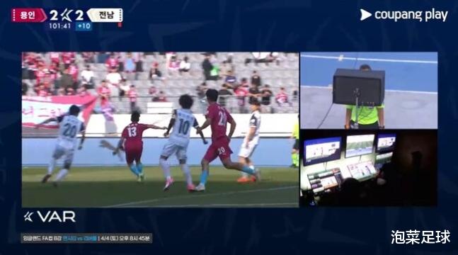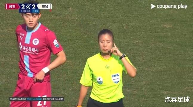 如果说K1联赛舞台上,裁判的这次误判只是影响了球队可能通过点球取胜的机会,那么K2联赛的一次致命误判,则直接让客队的3分变成了1分!在本轮全南天龙客场与龙仁FC的比赛中,全南天龙原本以2-1领先,眼看胜利在望。然而在伤停补时第7分钟,龙仁队的后卫车升贤在禁区内觅得机会完成破门,上演了压哨绝平。但全南天龙球员看到了对手在射门前的疑似手球动作,于是提醒主裁判吴贤珍此球存在争议。慢镜头显示,车升贤射门前的确是先手球犯规了,此球理应无效。