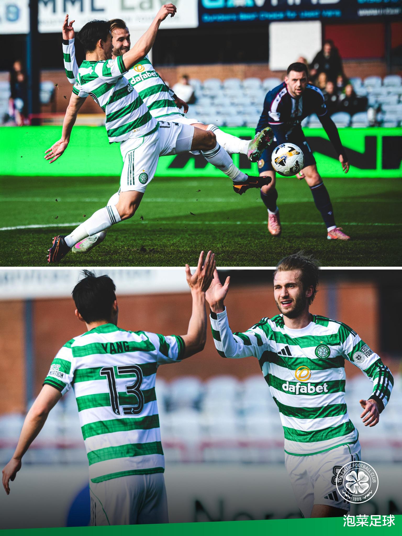 最后,我们把目光投向欧洲赛场。昨晚,共有三名韩国球员贡献了进攻数据。我们首先来看进球的梁铉俊。4月5日晚,在苏格兰邓迪的邓斯公园球场进行的2025-2026赛季苏格兰超级联赛第32轮中,凯尔特人客场挑战邓迪FC。梁铉俊以右边锋身份首发出场,并用出色的表现帮助球队拿下胜利。