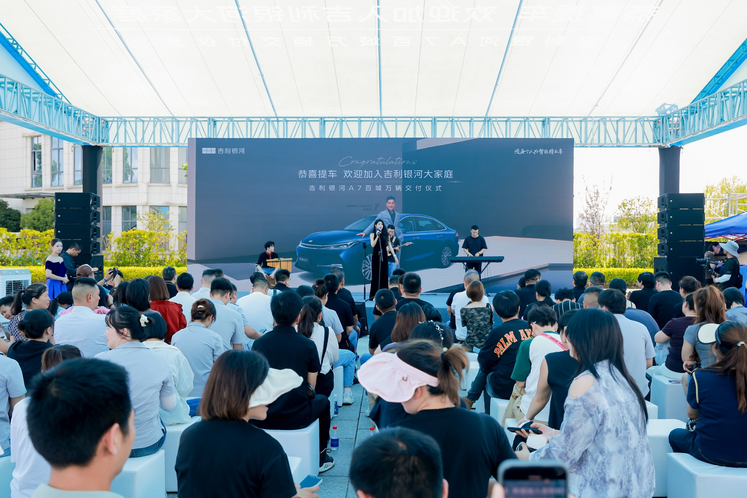 活动现场,百位满怀期待的车主齐聚一堂,正式开启了与这款融合前沿科技与时尚设计座驾的美好旅程。交付区域内,吉利银河A7整齐排列,其均衡流畅的车身比例、中正大气的造型设计,完美诠释了东方美学的独特韵味。标志性的「银河涟漪」一体式贯穿式前灯与「旭日东升」贯穿尾灯,蕴含着浓郁的中式风情,而质感浑厚、精雕细琢的车色,更是吸引了现场观众的目光,使其成为当之无愧的全场焦点。