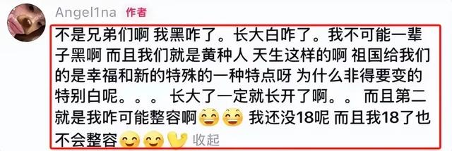因为长大之后变白了,她也经受了网友们的一轮又一轮的质疑,非说她整容或者是用了什么药。