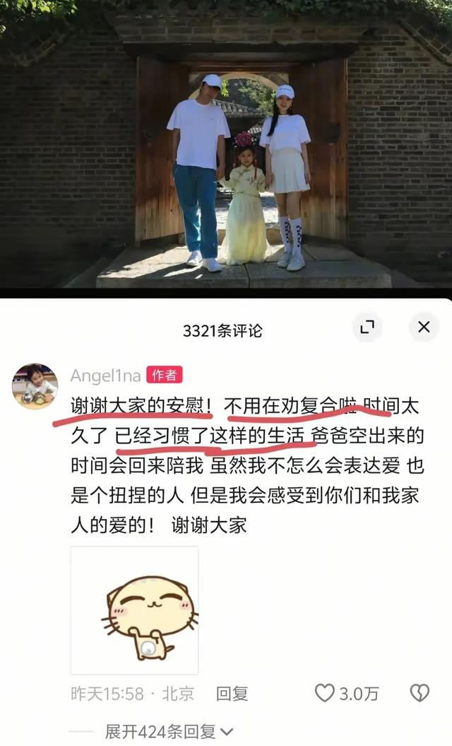 她回应:“谢谢大家的安慰,我已经习惯了这样的生活,爸爸非常爱我,只要一有空就会陪伴在我身边。”