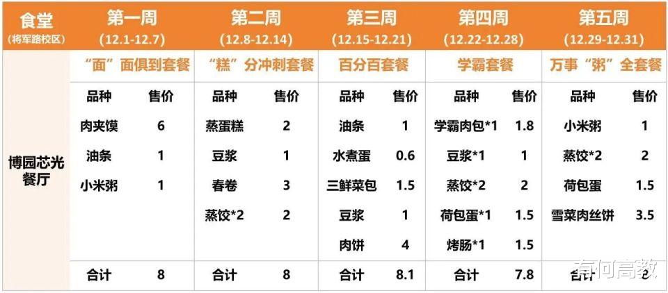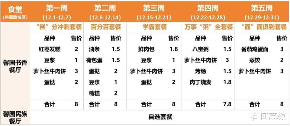 *套餐内容仅供参考,不同食堂可能会根据实际情况进行套餐搭配调整,以实际套餐内容为准