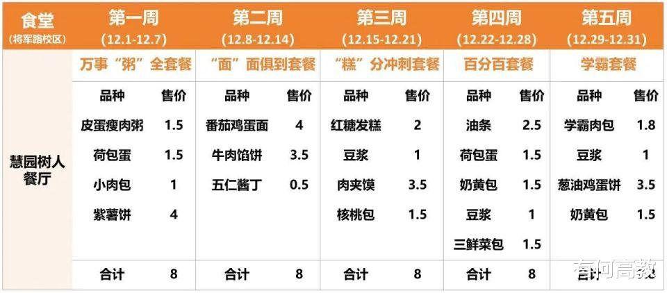 (2)食堂每天会推出1个套餐,每周进行轮换。