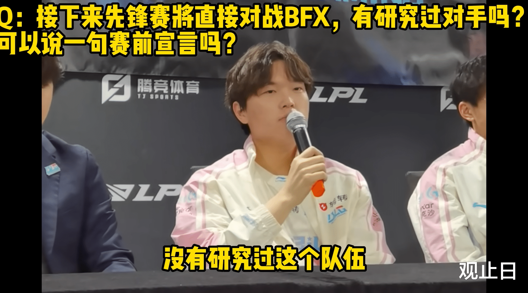被问及BFX时,Bin直言:“没听说过这支队伍,不知道从哪冒出来的,回去简单研究下应该挺好打。”