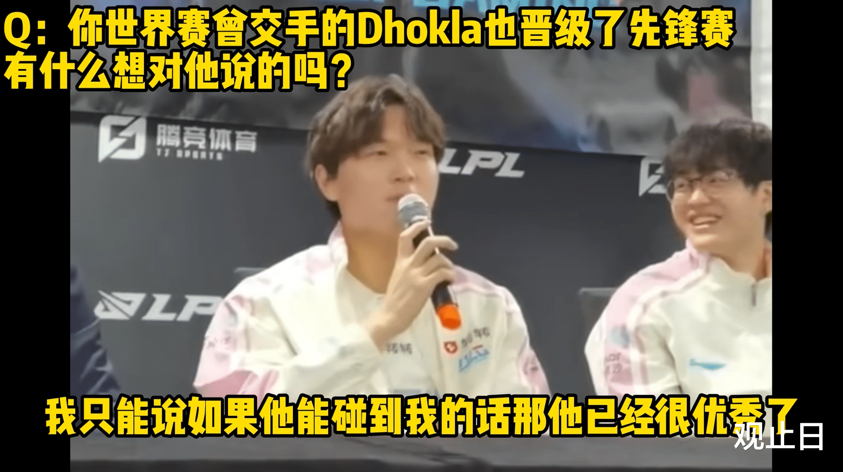 被问及去年单杀过自己的“印度神王”Dhokla时,Bin表示:“没什么想对他说的,如果他能碰到我的话,他已经很优秀了。”