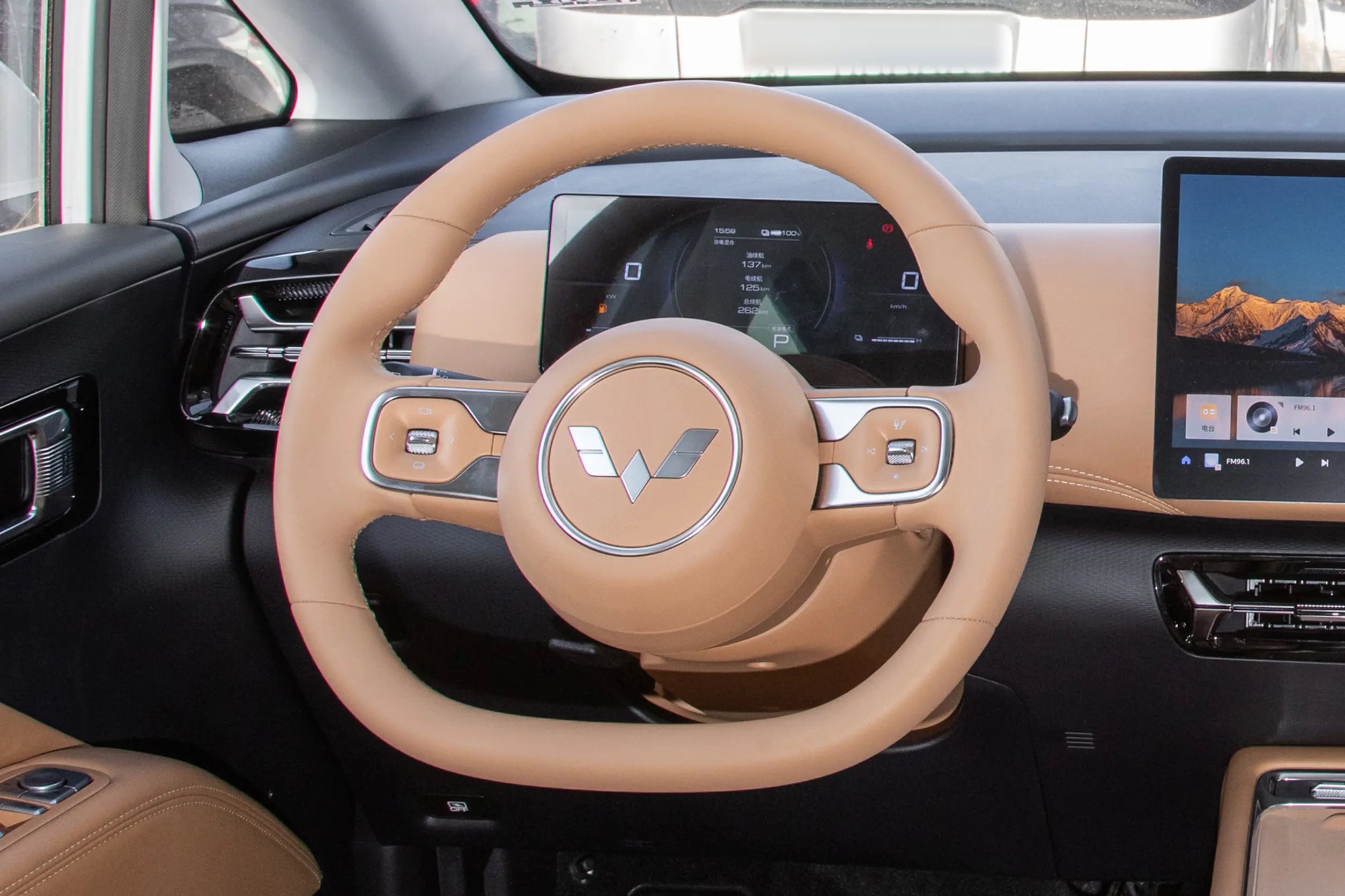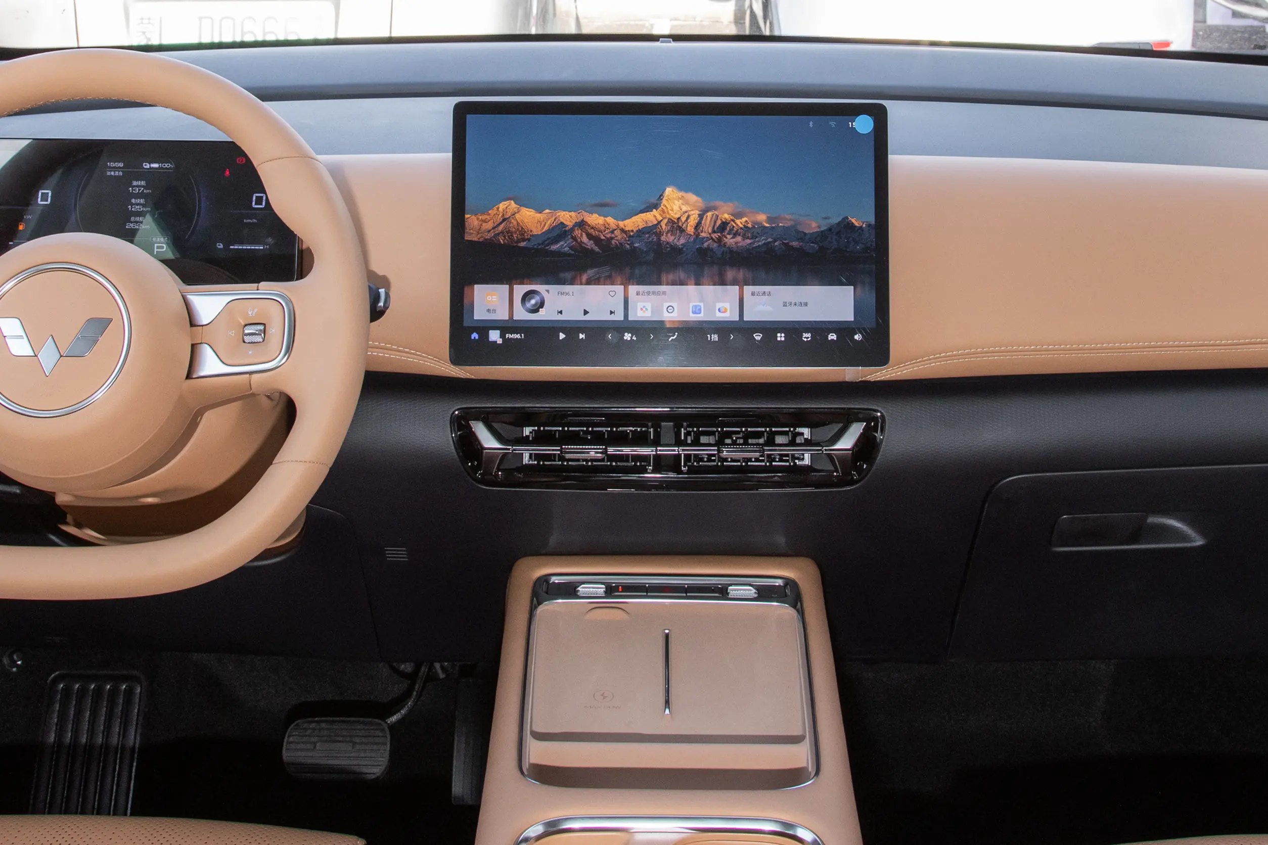 中控台布局:双幅式平底方向盘、3.5英寸液晶组合仪表、12.8英寸悬浮式中控屏。同时,五菱星光730 PHEV还使用了电子怀挡换挡机构,并且还在50W手机无线充电面板前方布置有了“实体空调按键”(熟悉后,便于开车时盲操作)。