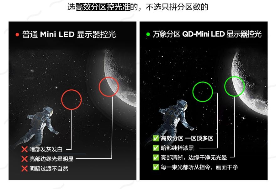 选画质,控光、亮度、色彩都很重要,但是不能只看数值,关键还是得有核心技术支撑。