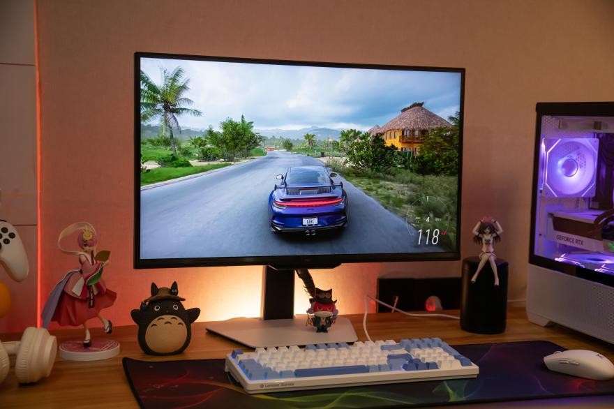 峰值亮度越高,就能更好还原游戏的高光层次和高亮画面,但是不少显示器的亮度持续时间短,高亮画面下还容易褪色泛白。而C3A Pro具备XDR2200nits峰值亮度,持续高亮的同时,亮部细节更细腻,高亮色彩表现也远超普通MiniLED显示器。色彩方面,C3A Pro采用的是QLED绚彩量子点技术,在DCI-P3和sRGB模式下均达到99%广色域,△E<1,色彩绚丽丰富、还原精准。用它来玩《赛博朋克2077》《荒野大镖客》,画面更加真实,自然景观色彩浓郁鲜活。