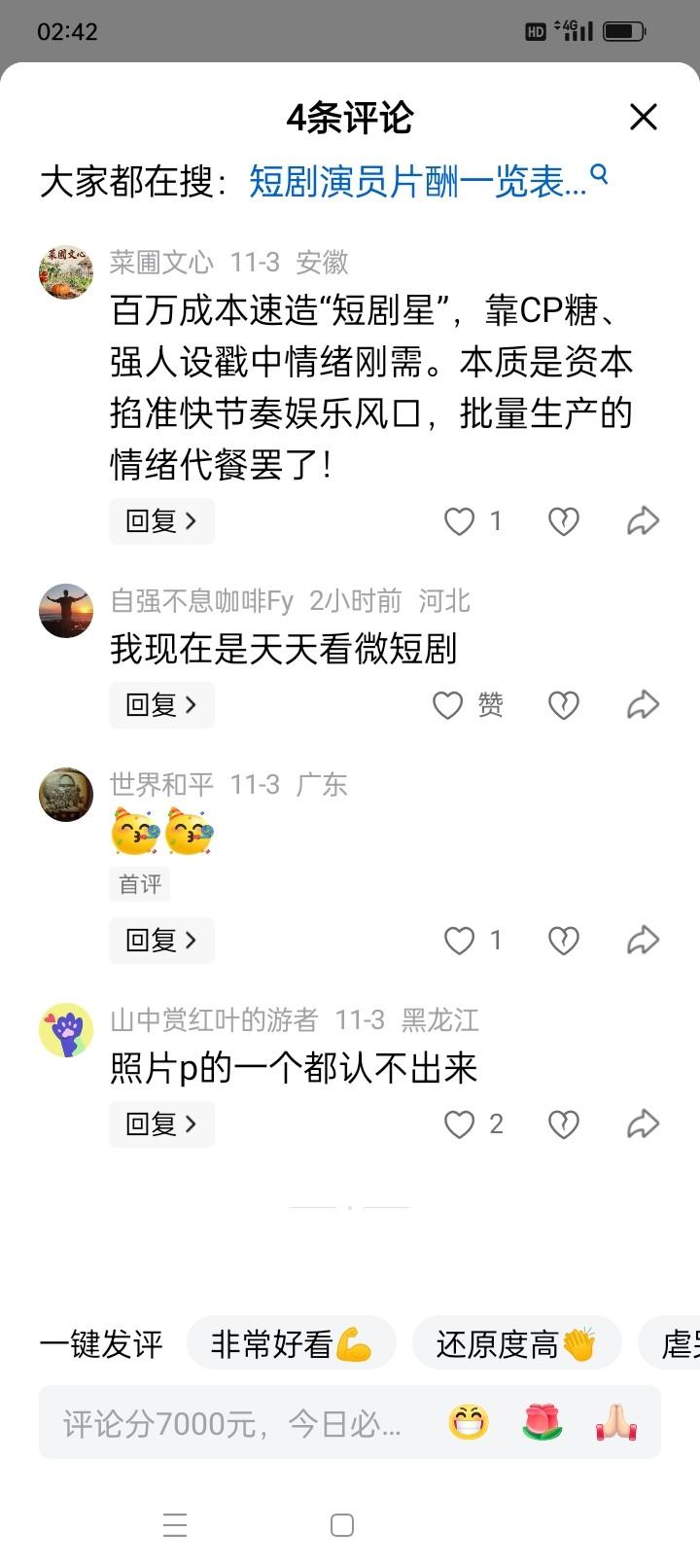 在这样的背景下,微短剧逐渐从边缘走向主流,演员们也开始崭露头角。以陈添祥、何健麒为代表的短剧演员,凭借在剧中的精彩表现,吸引了大量粉丝的关注和喜爱。他们不再是默默无闻的“表情包工具人”,而是成为了能够撬动770万预约量的“流量密码”。他们的名字开始频繁出现在各大社交媒体的热搜榜上,他们的作品也受到了更多观众的追捧和讨论。