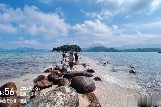 12:00 可以自由组队搭乘观光船,观赏无敌海景的西贡海,分别前往半月湾泳滩(厦门湾)和桥咀连岛沙洲,还可以到西贡小麦径之称的桥咀山径,拍大片,嬉水尽情享受沙滩和阳光,(走天使之路记得带上沙滩鞋防滑,半月湾沙滩是有更衣室和救生员,如果想体验浮潜,自行网上买简单浮潜面具就可以)
