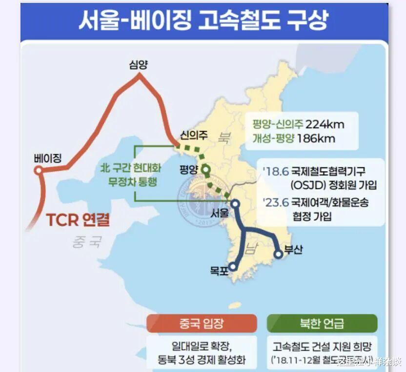 去年韩国政坛出现了一场全世界瞩目的闹剧,之后李在明总统在台了,这位新总统最近有了个新的构想,想要重启“北京—首尔中韩高速铁路”,给i话线路以首尔为起点,经过朝阳开城、平壤、新义州进入中国丹东,经过沈丹高铁和京沈高铁连接北京和首尔,同时并入中国高铁网络,通达更多的城市。