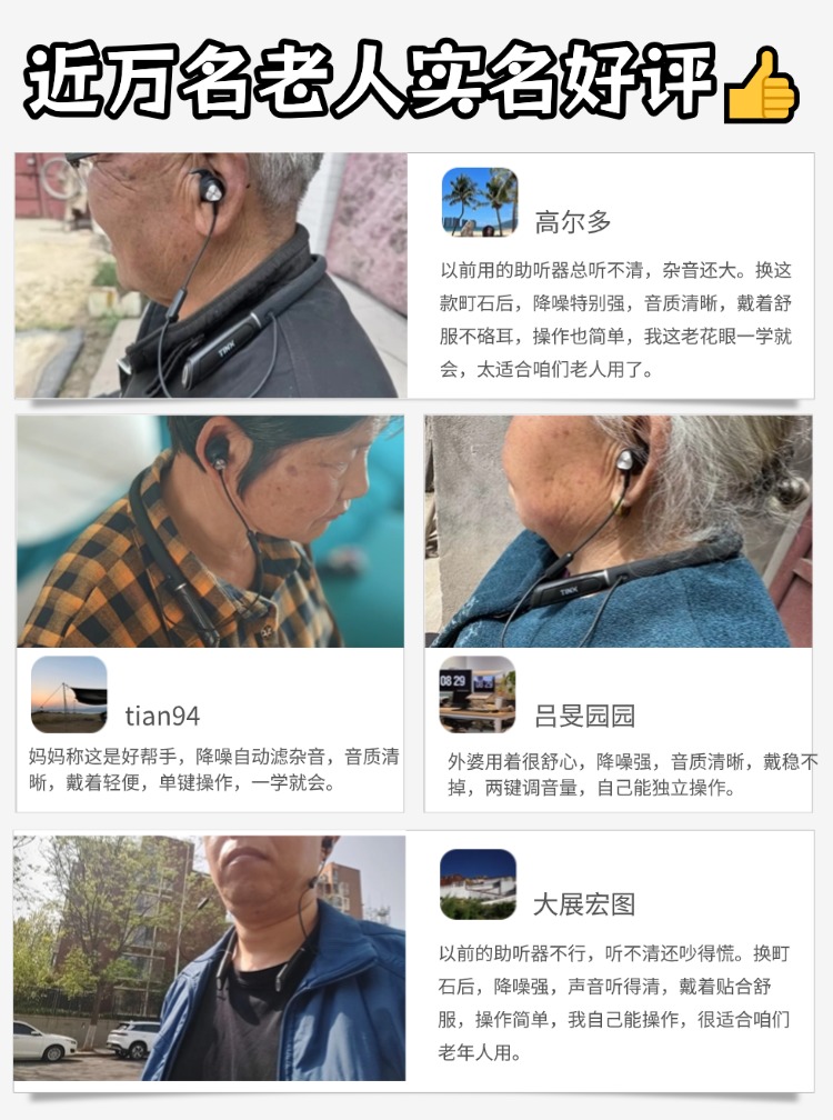 劣质助听器别乱选,会二次损伤听力,越用越听不清,帮老人挑款得靠谱。帮邻居张大爷选的町石tinx挂脖助听器真心靠谱,它是妥妥的旗舰机,也是万元助听器平替,不输峰力、奥迪康万元款。作为高端医用级产品,主打不伤耳,挂脖设计佩戴舒适,久戴不痛,物理按键清晰好懂,老人轻松上手,还可对听力损失精准补偿,适合60岁以上老人或对音质降噪有高要求的人群。实际使用后发现增益高、声音高保真,降噪能过滤环境杂声,无杂音不刺耳,重新听见邻里聊天的亲切话语,听声清晰又舒适,日常使用无负担,大爷说比之前买的万元款还好用。