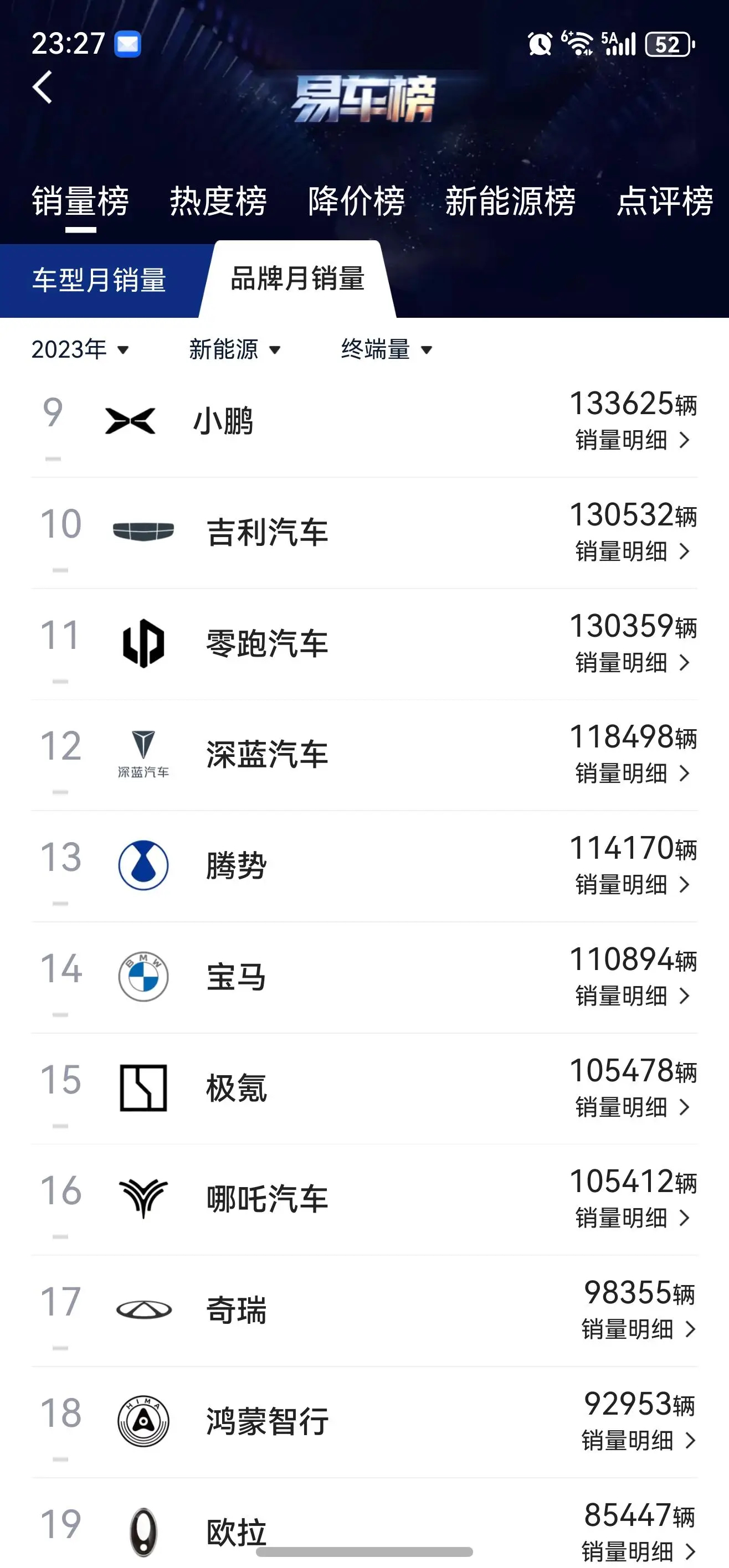新能源留下来的品牌其实就分两类,一个是传统主机厂的的新能源子品牌,比如央国企里面东风的,奕派;长安的深蓝,,;上汽的智已;北汽的极狐;广汽的埃安,昊铂。比亚迪、吉利、奇瑞,长城这些就更不用说了。然后就是新势力,主要是蔚小理加华系小米。而零跑是唯一一个没有身份背景,能活到今天的。和零跑很类似的是哪咤。哪咤23年的时候还能卖出10万台。谁知道没两年就嗝屁了。零跑能一直扛下去吗?