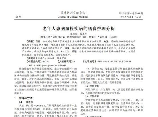 参考资料[1]张永宏.老年人患脑血栓疾病的膳食护理分析[J].临床医药文献电子杂志,2017