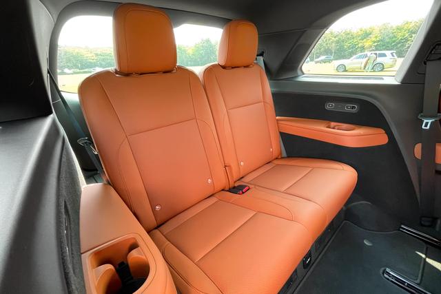 领克900基于SPA Evo架构打造,车身尺寸为5240×1999×1810mm,轴距达3160mm;理想L9车身尺寸为5218×1998×1800mm,轴距3105mm。从数据上看,领克900在长度和轴距上略胜一筹,空间利用率也更高(88.2% vs 85%)。领克900采用三排六座布局,第二排座椅支持180°旋转和550mm超长滑轨,可一键切换商务会议、亲子互动或全平躺模式,第三排座椅提供125mm前后调节,配备加热/按摩功能,兼顾舒适与实用。理想L9的第二排座椅虽有腿托和通风功能,但不支持旋转,第三排功能性相对较弱,仅提供基础调节。后备箱容积方面,领克900为360L(扩展至1250L),理想L9为332L(扩展至1191L)。