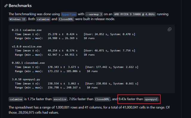 同事有一段 python 脚本,里面用 pandas 读取一个几十万行的 excel 文件,但是速度实在太慢了。问我有没有什么好办法提升运行速度。如果在几个月以前,就实在没有什么好办法了。毕竟在 python 生态中,读写 excel 最后的倔强就是 openpyxl 了。你就别指望它能提速了。