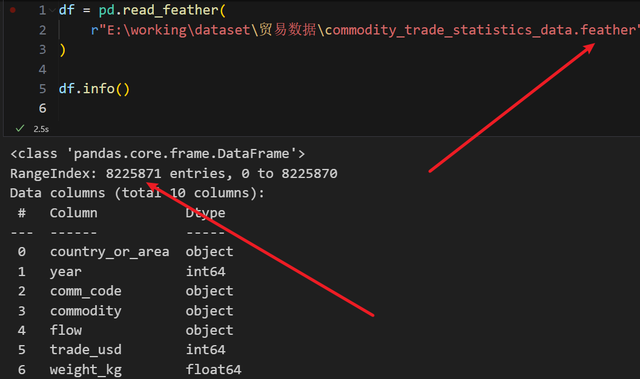 9.4 秒,还是比 feather 文件的 2.5 秒慢多了。不过有相关经验的小伙伴应该知道,加载一个50 万行的 excel,只要差不多10秒,已经是谢天谢地了。