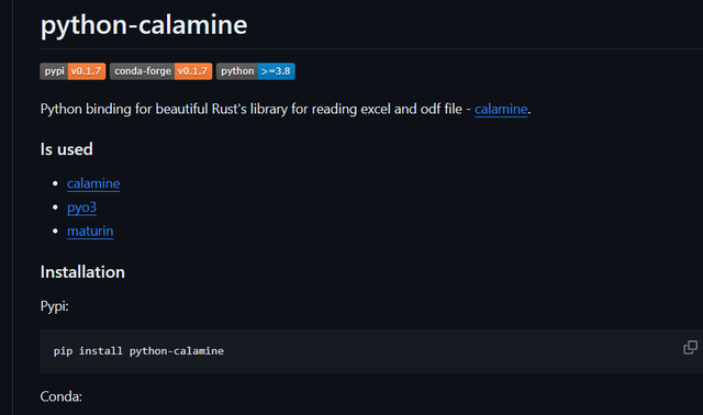 这就是 calamine 库,如果你到 github 上查看,会看到其实它是一个 rust 的库: