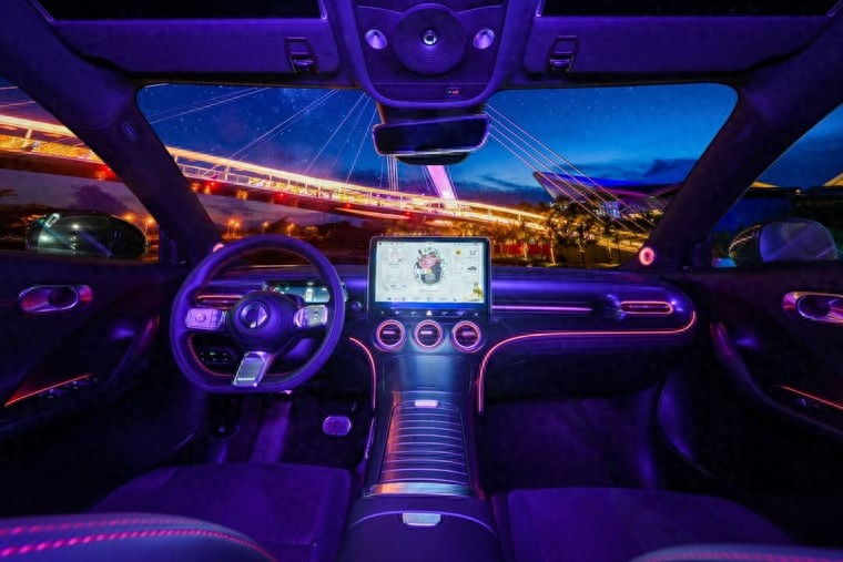 比起尺寸,更让人感受到与旧款 Smart 和当前梅赛德斯区别的是氛围。旧款 Smart 总是受制于预算限制,迫使开发人员和设计师采用一种俏皮的塑料外观,让人联想到轮子上的口香糖自动售货机,而现在则采用了大量的油漆和皮革,并配备了最先进的车载娱乐系统。方向盘后面的动画仪表虽然很小,但上方有一个大大的抬头显示器,中控台上方还有一个比梅赛德斯 C 级轿车更大的屏幕。该软件的功能至少与竞争对手的产品一样出色,但更符合中国人的喜好,更富玩味。例如,它采用一只狐狸作为头像,成为虚拟的副驾驶。相比之下,当前一代的梅赛德斯 A 级轿车和 GLA 几乎显得过时了,而新款 CLA 配备的超级屏幕也并不比它更出色。