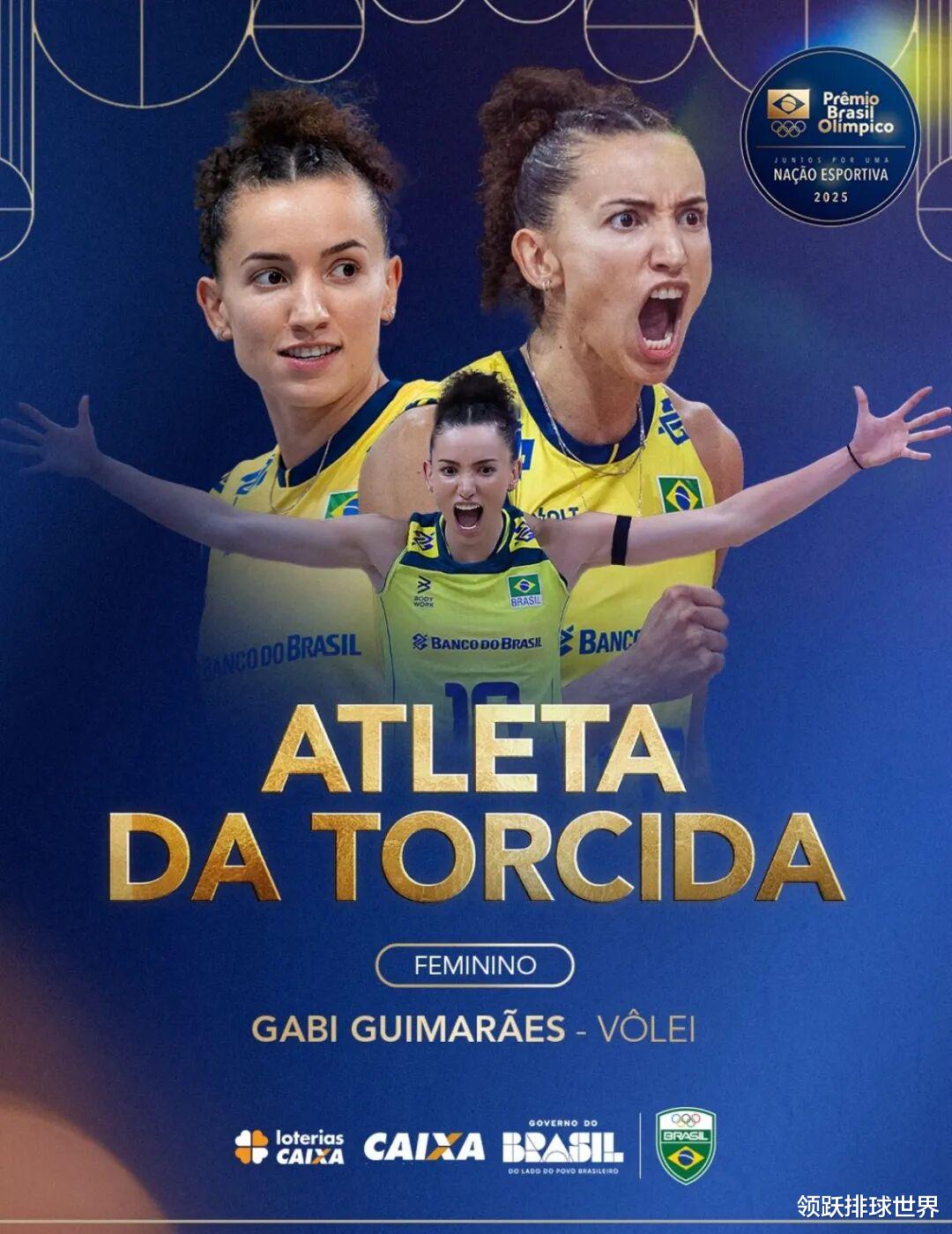 巴西奥运奖由巴西奥委会(COB)于1999年设立,旨在表彰在赛季中表现卓越的运动员、教练员、团队和相关人士,这项殊荣于12月12日在里约热内卢举行的颁奖典礼上揭晓,虽然加比因赛事无法亲临现场,但她特别录制了一段视频,分享了自己的喜悦与感谢。“知道有排球迷的加持,我非常感动!”加比在视频中谦逊表示。