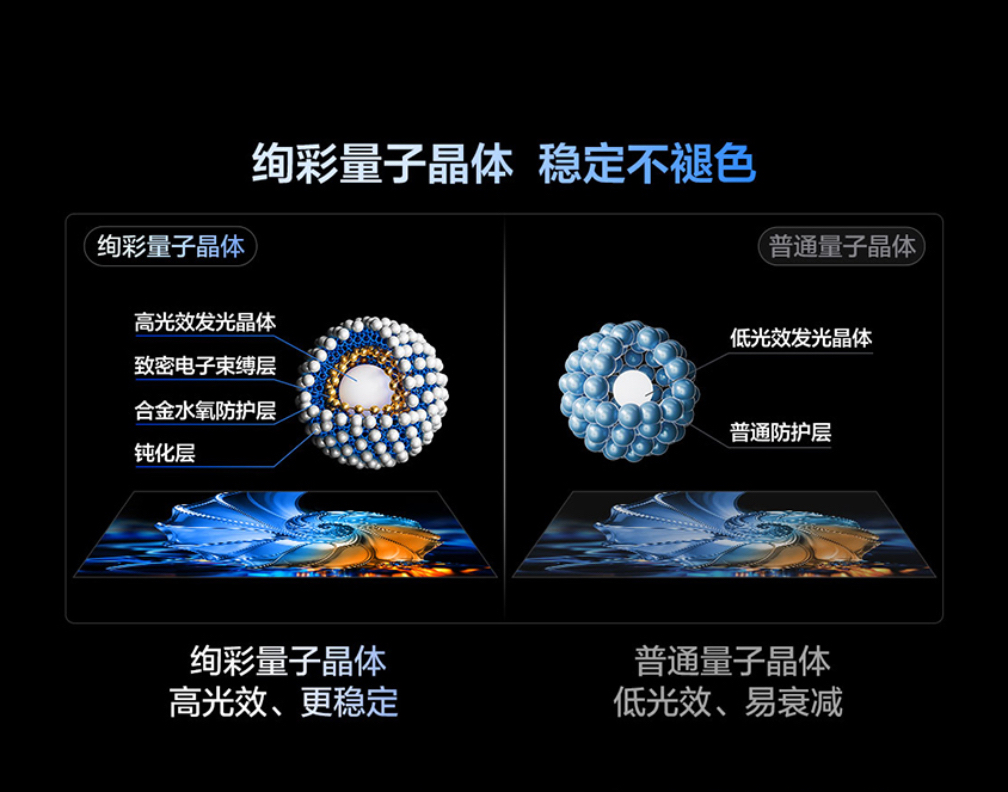 画质的升华,离不开亮度与色彩的协同发力。绚彩XDR技术带来1500nits持久峰值亮度,配合超动态控光算法,强化高光细节表现,即使在强光环境下,屏幕画面依旧清晰耐看。量子点PRO技术拓宽色彩呈现边界,拥有更广色域覆盖,还原纯净色彩,画面色调饱满细腻,过渡柔和自然,长期使用也不易出现色彩衰减问题,和万象分区相互配合,组成画质铁三角,进一步丰富画面层次与视觉质感。