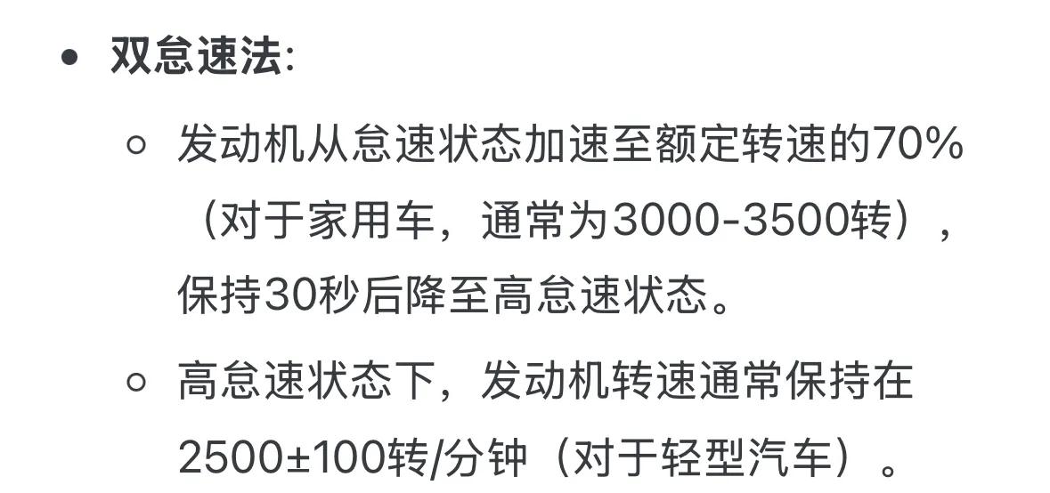 饱受诟病的双怠速关于双怠速标准其实有多条、各位有闲心可以自行查阅。而真正或可能导致发动机损坏的关键其实就是这条:发动机从怠速状态下加速至额定转速的70%。看似简单、合理、不过分的标准,实则最容易出问题。这就好比热恋中的男孩问女友“宝贝你想吃啥”?女友:随便。