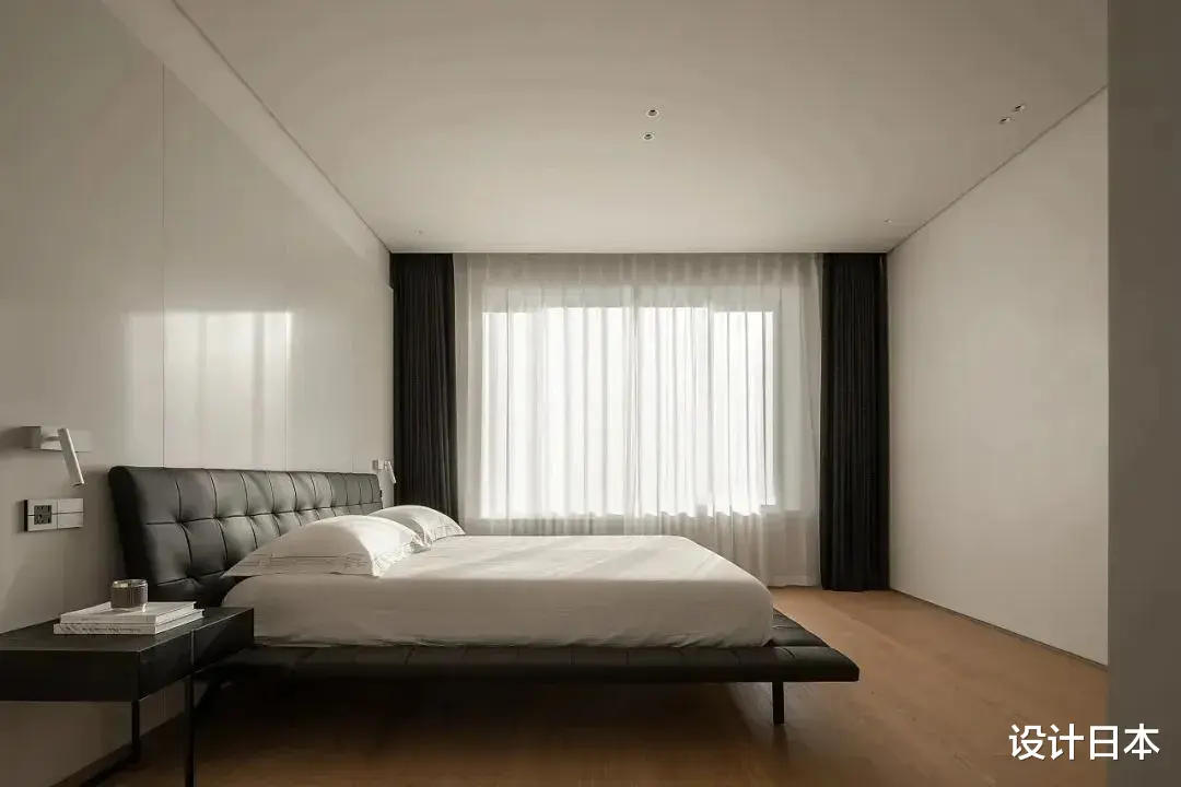 在卧室的设计中,极简主义的理念被淋漓尽致地展现,营造出一种既简约又不失格调的居住氛围。设计师巧妙地运用克制凝练的线条,赋予卧室空间独特而强大的张力,使得整个空间在视觉上更加统一与和谐。
