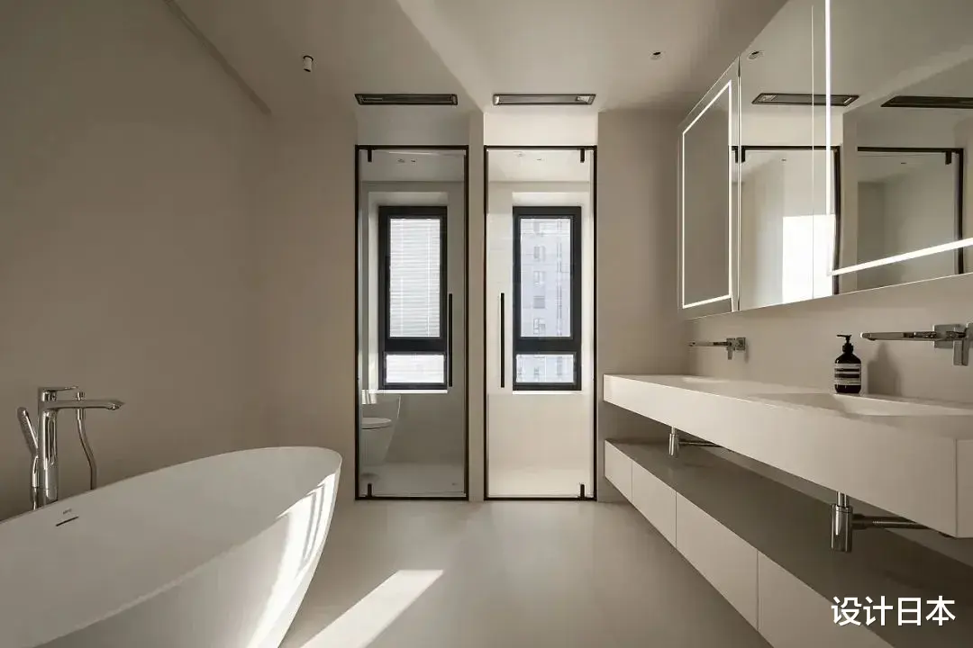 浴室空间中,设计师将浴室的收纳需求纳入了重要的考量范围。通过巧妙的收纳设计,不仅满足了居住者的日常储物需求,更在保持极简质感的同时,与生活的多元化需求形成了完美的呼应。