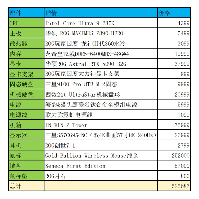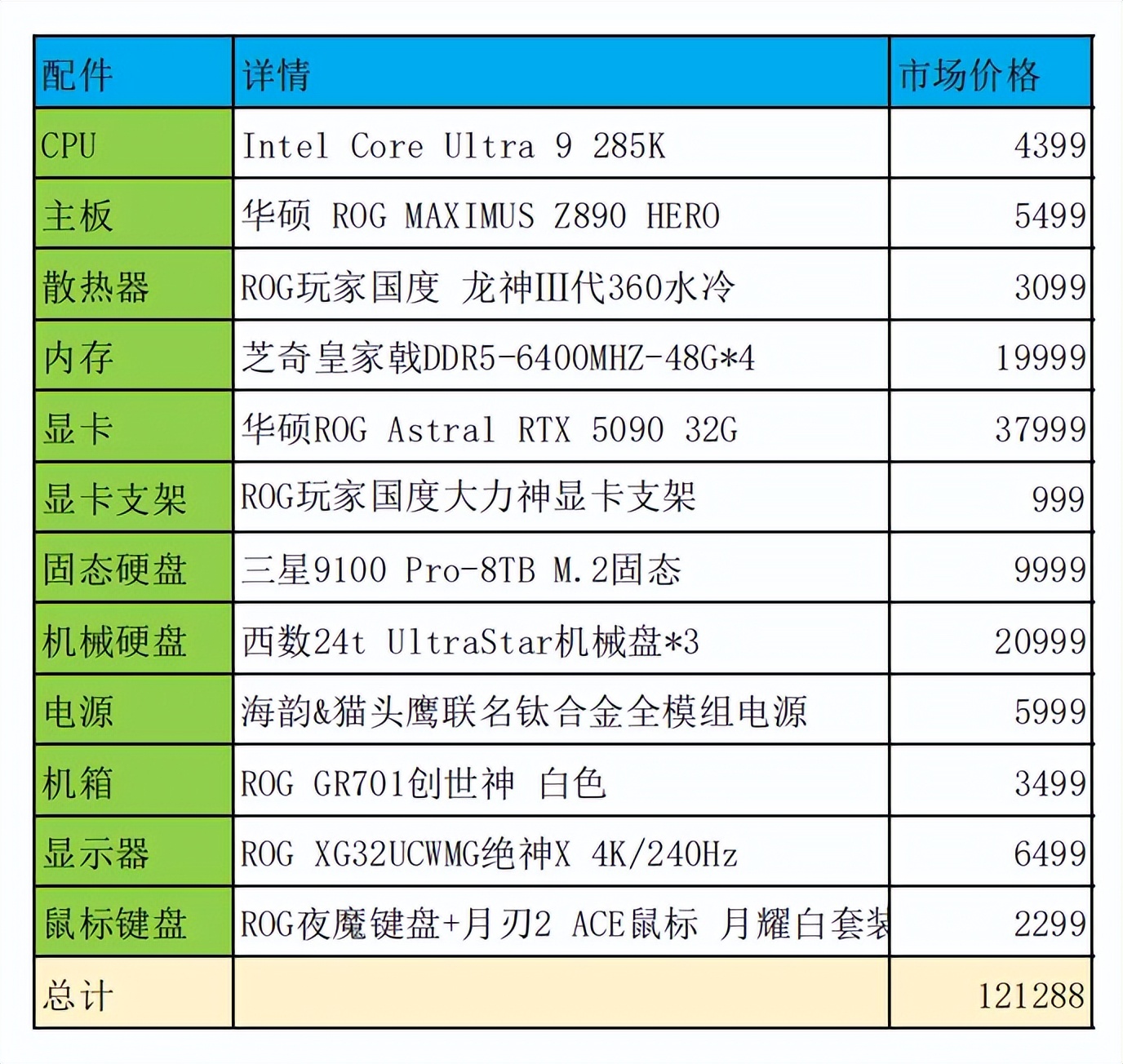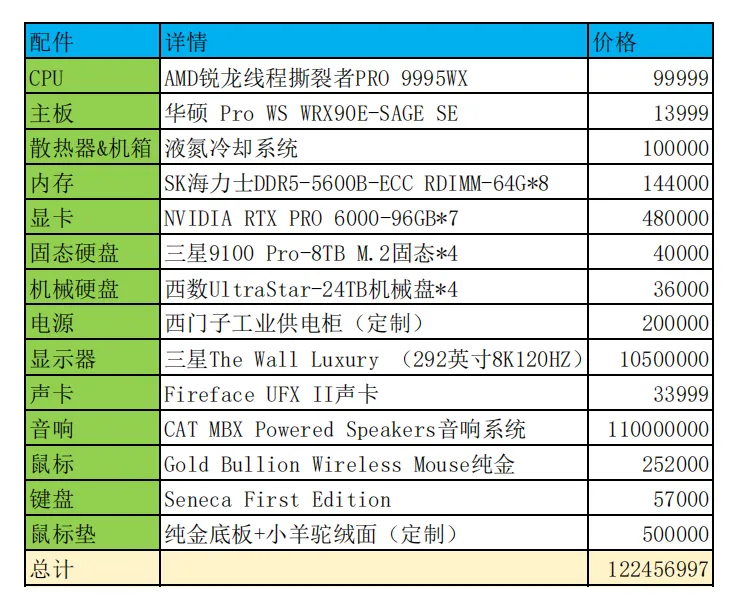 这套配置,总价超过1.22亿,所有配件和外设,基本都是顶级的了!
