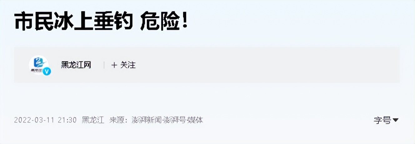 1、原文刊登于黑龙江网2022-03-11发布的关于《市民冰上垂钓 危险!》的报道;