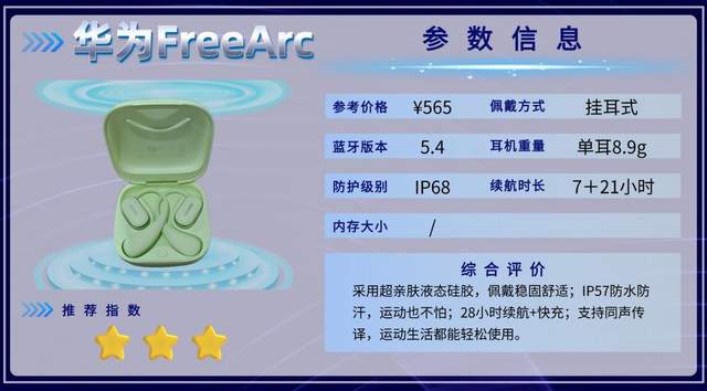 华为FreeArc更注重佩戴舒适性与续航,同时具备防水保护和便捷操作,音质中规中矩但稳定。附加的同声传译功能对跨语言场景很实用,总体是轻量、稳固、适合运动和日常办公兼顾的选择。